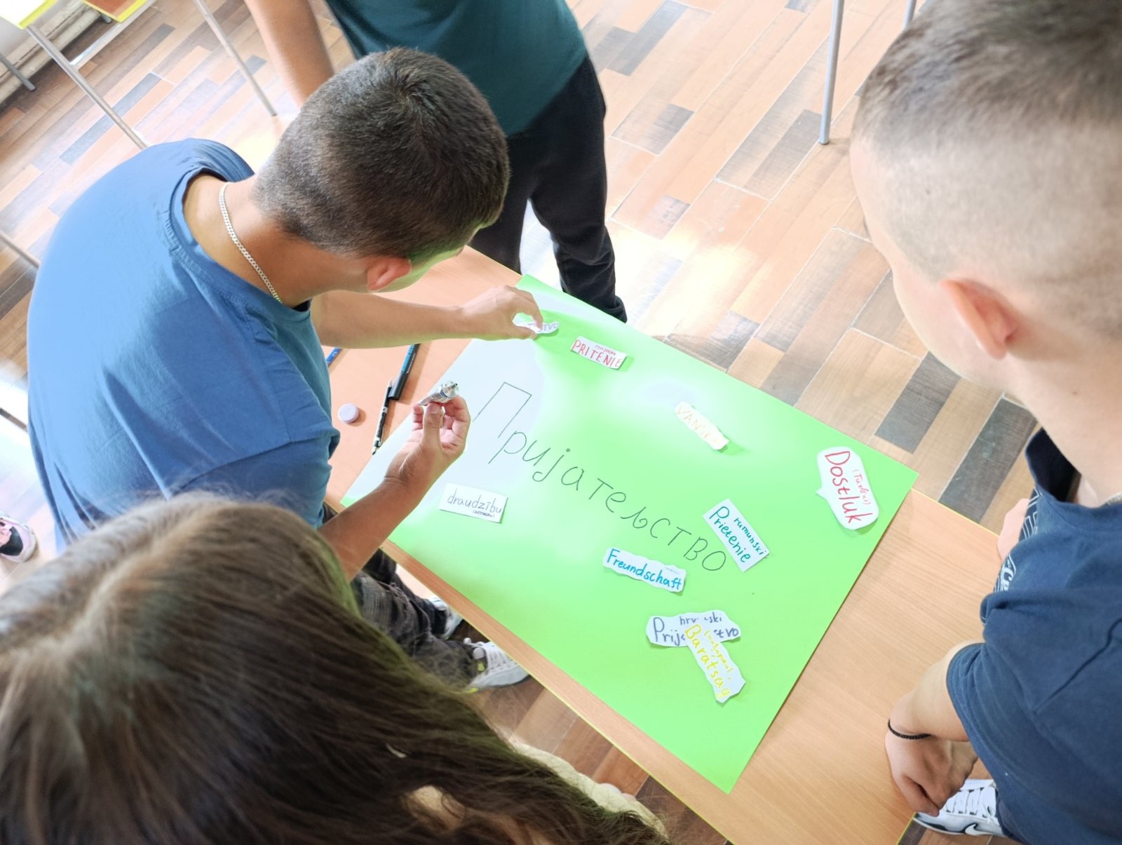 Након дискусије и презентације наставника руског, енглеског и српског језика, ученици су одгледали кратак филм о томе како се, специфично, енглески језик мењао током векова. На крају предавања, ученици су играли интерактивну игру под називом "Где се налазим" и договорено је да ученици наше школе израде један постер на тему "Језици отварају срце и ум". Кроз радионицу, остварена је и коорелација следећих предмета: у сарадњи са наставником математике Зораном Пејчићем и наставницом информатике Маријаном Вељковић (коорелација информатика) и наставницом географије (коорелација са географијом)