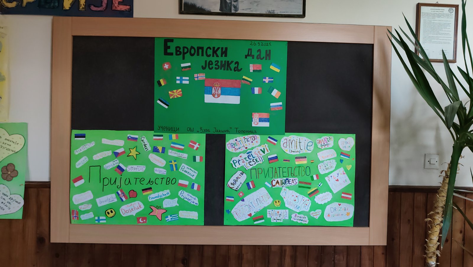 Овај дан обележили смо тако што смо са ученицима од 5 до 8. разреда одржали предавање (кроз презентацију) на тему језика и значаја учења страних језика. Предавање су реализовали наставник енглеског језика Ивица Петровић, наставник руског језика Милена Радојковић и наставник српског језика и књижевности Снежана Митровић. Разговарали смо о томе какав је значај знања више језика и скренули смо ученицима пажњу на потребу да се сачувају многобројни европски језици, који имају мањи број говорника, јер тако чувамо и уважавамо различитости које су основа европске културе. Ученици су активно учествовали у дискусији и разговарали са наставницима о значају језика које уче у школи. Такође, промовисани су језичка и културна богатства Европе и проширили смо свест о целоживотном учењу страних језика, како у школи тако и ван ње.